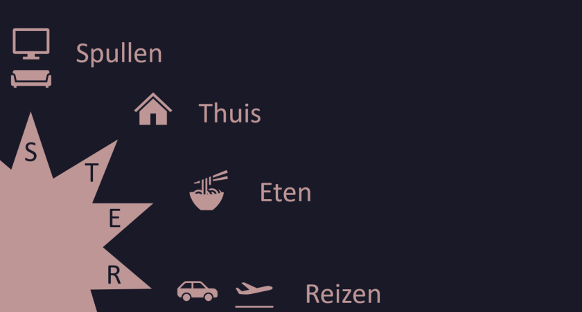 Wat ook S.T.E.R. vooral zegt is dat als je focust op Spullen, Thuis, Eten en Reizen, je misschien even wat minder zorgen moet maken over afval scheiden, biologisch eten, lokaal eten, verpakkingsvrij leven etc.